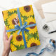 Os girassóis modelam o papel de envolvimento. Um papel de envolvimento projetado com um teste padrão do girassol em tamanho grande. Se você prefere um tamanho menor, você pode personalizá-lo e reduzir o teste padrão do girassol em uma forma facil.