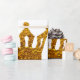 Desenho in-folio dourado da coroa no papel de envolvimento.