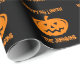 Papel de envolvimento feito sob encomenda do Dia das Bruxas com cabeça cinzelada da abóbora. Design preto e alaranjado da lanterna do jaque o com nome de família personalizado. Fontes e acessórios do partido do divertimento para adultos e miúdos. Papel de embrulho cinzelado da cara da abóbora. Mude a quantidade para obter o preço maioria o mais barato.