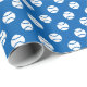 Papel de envolvimento azul e branco do aniversário do impressão do teste padrão da bola de tênis para mulheres e miúdos dos homens.