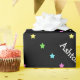 Umas coloridas, estrelas do Natal do divertimento projetam com as estrelas amarelas, verdes, azuis e cor-de-rosa em um fundo preto clássico. Adicione facilmente seu nome feito sob encomenda.