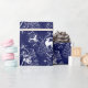 papel de embrulho profundo dos azuis marinhos com impressão inspirado jouy toile branco do de. Uma fada elegante da floresta toma um stroll quieto através de uma floresta sereno do inverno, com cervos, árvores, e neve. Aperfeiçoe para um Natal elegante ou um evento temático do feriado de inverno.