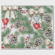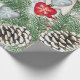 Papel de embrulho de Natal com cones de pínus, arcos, bagas, corações, flocos de neve. Belo papel de embrulho de presente de Natal sazonal para a época de Natal.