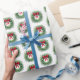 O papel de embrulho de presente de Natal é mostrado em um festivo impressão de coroa de Natal. Personalize este papel ou comprar como está. Imagem licenciada
