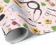Embalagem de presente com temática médica exclusiva com material de saúde e padrão de flores em fundo rosa.