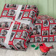 Faça seu próprio papel de embrulho personalizado com 5 das suas melhores fotos da família. Este presente vermelho, branco e preto tem alguns simples flocos de neve e a palavra alegre adicionada para elogiar o design.