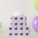 Este papel de embrulho apresenta um padrão repetitivo de corações roxos sobre um fundo branco.