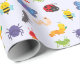Este papel de embrulho de inseto é divertido e colorido, com uma festa de inseto incluindo uma abelha fofa, aranha roxa, lagarta, formiga, joaninha, borboleta e caracol - todos celebrando o aniversário do seu filho. Meninas e rapazes adorarão essas personagens insetos!