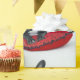 Bulldog francês sentado em um travesseiro vermelho. O texto pode ser personalizado.