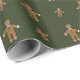 Este papel de embrulho é coberto por um padrão de gengibre estilo cartoon, com todos os adornos clássicos, incluindo botões de gomo e detalhes do glacé.