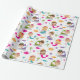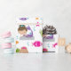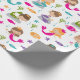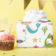 Papel de embrulho adorável com sereias doces e peixes pequenos em rosa, roxo, verde e chalé. Perfeito para os aniversários da sereia.