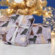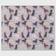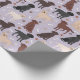 Cães de Collie Rough Cute sentam-se e ficam de pé e rollover com casacos sápidos, tricolores, unidos e brancos com ossos de cão espalhados e padrões de pegadas.