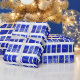 Este padrão azul real de presentes é único e ousado para presentes sob sua árvore este ano!