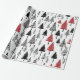 Papel simples branco preto e branco e papel de embrulho de árvore de Natal vermelha.