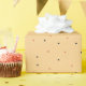 Senzillo y elegante paper de regalos con puntos negros y rojos sobre fondo amarillo anaranjado.