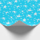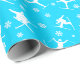 Adicione um toque divertido a presentes para esquiadores com este papel de embrulho padronizado. Ele apresenta ilustrações de esquiadores fazendo truques de esqui, assim como flocos de neve. Os gráficos brancos são colocados sobre um fundo azul brilhante.