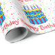 Um grande bolo de aniversário enfeita este divertido papel de embrulho de aniversário feliz. Este papel festivo de embrulho de aniversário é excelente para todas as idades. O design é da arte original.