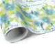 Papel de enrolamento mostrado com um impressão de multicores azul e Primavera verde sobre fundo branco. O texto na cor coordenadora diz "parabéns no dia do seu casamento". Criado em papel brilhante, mas você pode selecionar a escolha do papel. Personalize este item ou comprar como está. Consulte coordenação de placas de papel e guardanapos, e também convite.