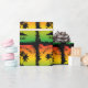 Papel de embrulho de aniversário jamaicano personalizável com cores de bandeira rastafariana num pôr de sol tropical atrás de palmeiras de silhueta preta