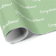 Folhas de papel de embrulho de festa elegantes e clássicas. Um fundo verde sage, texto branco: Parabéns!