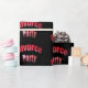 Uma festa de divórcio embrulhou com gráficos vermelhos do partido do divórcio em um fundo preto.