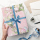 Papel de embalagem floral com Páscoa cor-de-rosa.