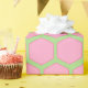 Este papel embrulho tem um design de hexágonos cor-de-rosa pálido num campo de verde-claro.