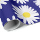 Um padrão repetitivo composto por muitas margaridas pintadas à mão sobre um fundo azul marinho profundo.