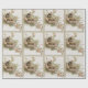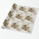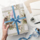 A imagem do vintage de um pássaro com seu ninho, em um ramo de florescência, decora este papel de papel de embrulho. Uma maneira bonito de apresentar esse presente especial para o dia das mães, a casa nova, os chás de fraldas e o mais!