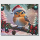 Papel De Presente Pássaro de Natal bonito sentado num galho