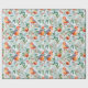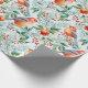 Papel De Presente Pássaro de Natal Verde Deixa Flores Vermelhas Aqua