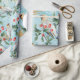 Papel De Presente Pássaro finch, verde natal, morango vermelho