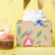 Bons pássaros Feliz Aniversário embrulhando papel para crianças. Diferentes aves coloridas com folhas e fundo de cor creme com Parabéns.