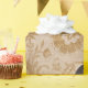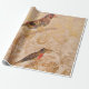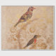 Um belo vintage inspirou um design com dois pássaros sentados em galhos com um fundo leve e bronzeado. Há uma camada de folhas e flores em ouro. Perfeito para desacoplamento, artesanatos de papel ou embrulhamento de presente. Trabalho de arte por digitalcurio.