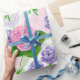 Padrão de aquarela com várias flores e pássaro azul pintado com aquarelas.