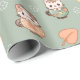 Wrap your gifts in pure fall cuteness with this pastel kawaii wrapping paper featuring cozy cats snuggled inside autumn mugs. Surrounded by soft leaves and gentle florals on a muted sage green background, this pattern is the perfect blend of cozy and playful.