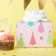 Wrap your presents in cheerful holiday style with this whimsical pastel Christmas tree wrapping paper! Featuring a playful mix of pink, red, aqua, and lime green trees against a soft blush pink background, this design brings a modern retro twist to traditional Christmas wrapping.