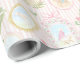 This traditional Christmas gift wrap features pastel nativity scenes of baby Jesus sleeping in a manger with Mary and Joseph, three wise men and angels on a striped background.