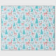 Papel De Presente Pastel-Rosa-Rosa-Congelado Pinheiros Azuis Sem-Cei