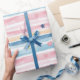 Papel De Presente Pastel Whimsical Striped Heart and Star Pattern De