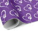 Coração branca com pata de cão solteiro impressa em fundo roxo. A cor de fundo pode ser alterada.