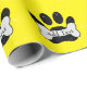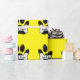 Belas charges estimula pata de cachorro e ossos. Rolos de papel de embrulho de presente personalizados. Versão amarela brilhante com efeito aflitivo aplicado à imagem. Dar uma ideia para amantes de cães e seus cachorros. Editar texto para personalizar.