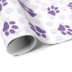 Este papel de embrulho bonito para todas as ocasiões, incluindo aniversários, tem dois tons de pata roxa. Perfeito para amantes de gatos e cães.
