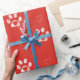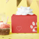 Patas brancas de fundo vermelhas e padrão de coração. Dia de os namorados ou design de presente de Natal