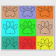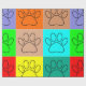 Uma pata de cão bonita imprime o estilo de desenho animado em quadrados coloridos. Padrão decorativo original para produtos relacionados com cães. Design de papel embrulho exclusivo.