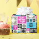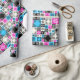 Patterned tiles on birthday wrapping paper. Use "Personalize this template" to change the "Happy Birthday Sarah! Best Sister Ever" name & relationship text and create a unique, customized paper. Add a personal touch to your gift wrapping with this bold and colorful pattern featuring decorative tiles of various sizes and varied patterns. Black designs on black, white, blue and magenta backgrounds. All patterns were designed and drawn by me and are inspired by Celtic and Mughal design.