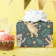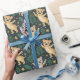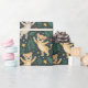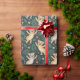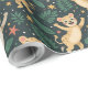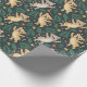 "Patterned wrapping paper featuring illustrations of raccoons and leaves on a green background. The image shows both unrolled and flat views."