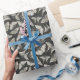 O papel de embrulho do Dia das Bruxas assustador apresenta um padrão de mariposas brancas em um fundo de enfumaçado escuro.