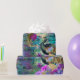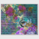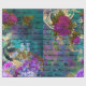 Este design vibrante mostra um lindo pavão com embelezamentos de ouro cercados por flores roxas sobre um fundo verde, roxo e rosa com escrevendo cursivo. Excelente para a desvinculação de arte, artesanatos de papel ou invólucro de presente. Certifique-se de verificar o modo de exibição de "costura" para garantir que ele seja aceitável.