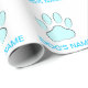 As pegadas do cachorro azul-bebê. Papel de embrulho personalizado para presentes de cão. Para os "meninos".
